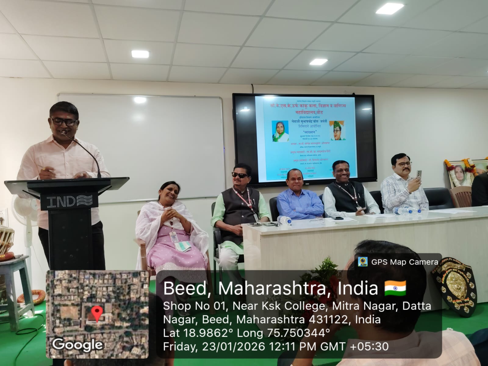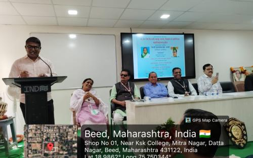 3. Participant of speech competition and principal and others faculties during certificate distribution ceremony of Beed City Level Speech Competition on the topic of Mahatma Gandhi’s Life and Work. organized by Department of History on 1st February 2023 Participants with their certificate at City Level Speech Competition on the topic of Mahatma Gandhi’s Life and Work. With the Principal Dr. Shivanand Kshirsagar of Mrs. K.S.K. College and Hod, Dr. Anita Shind