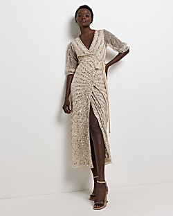 Product code: River island gold wrap dress store